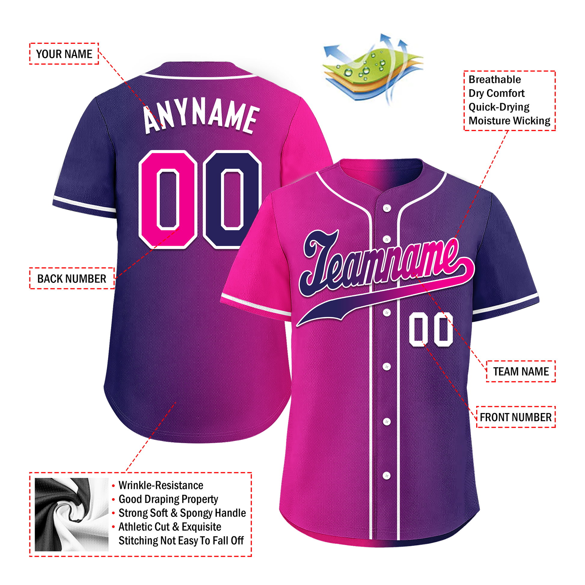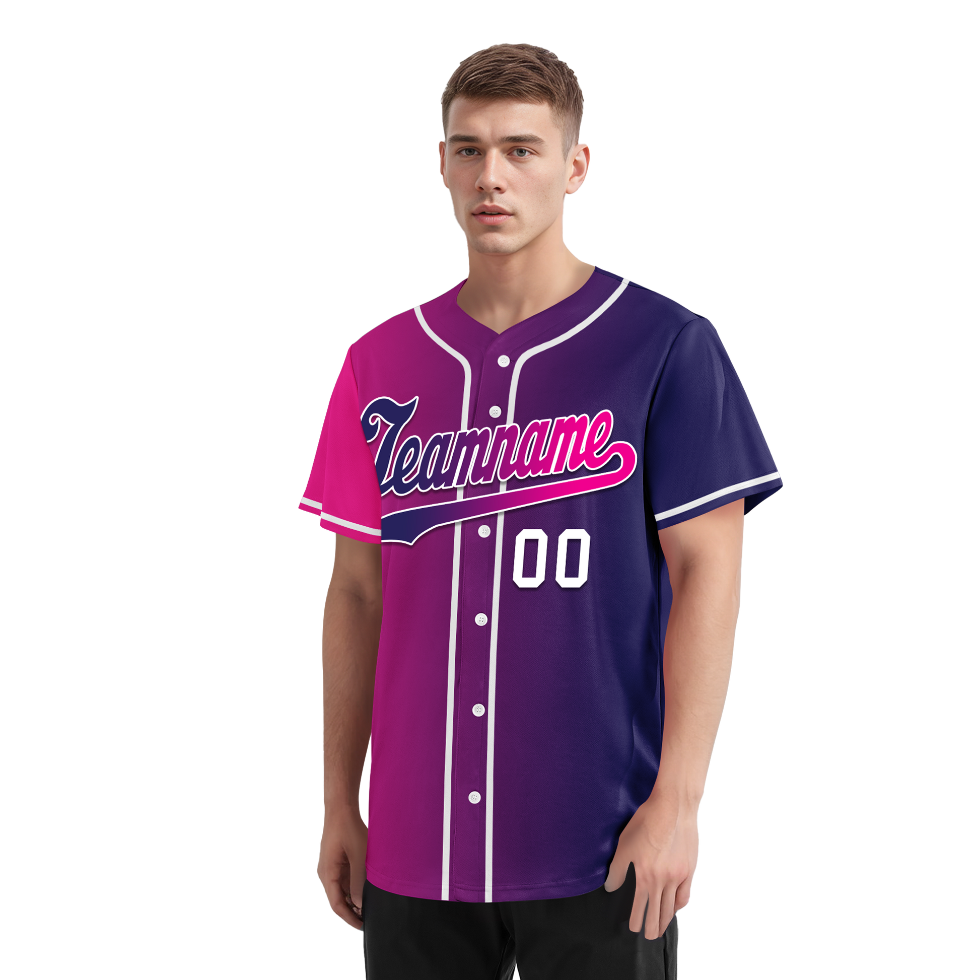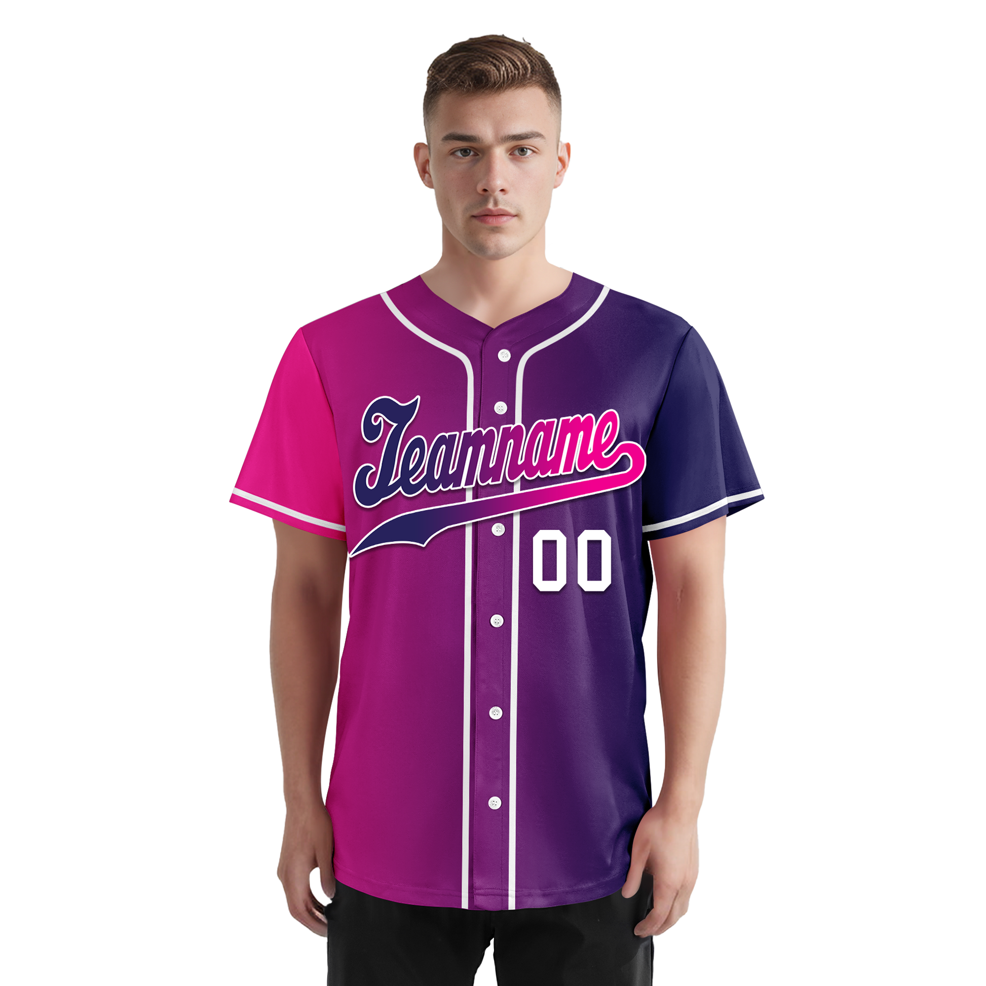 Custom Pink Blue Gradient Fashion Personalized Authentic Baseball Jersey BSBJ01-D0a7aab