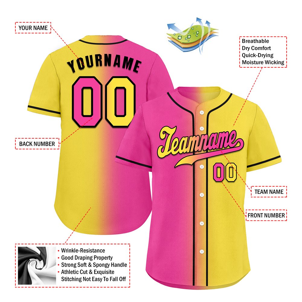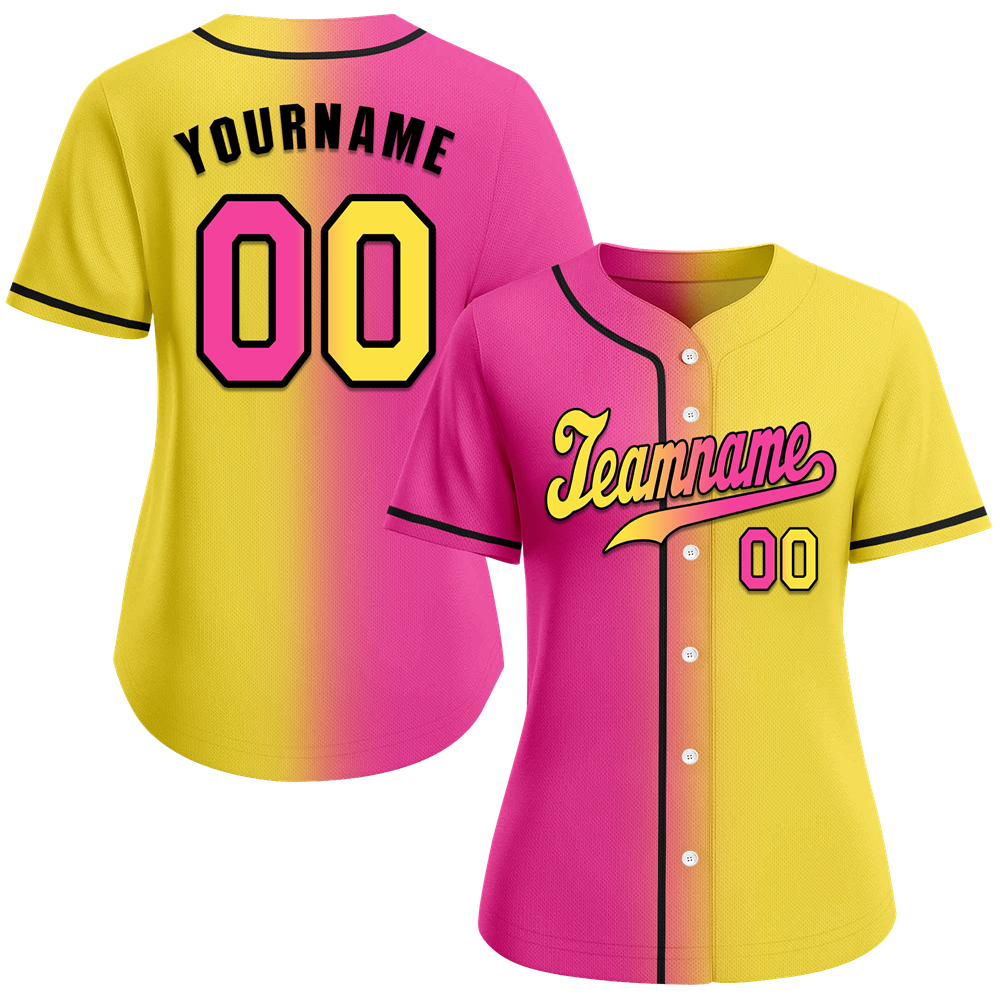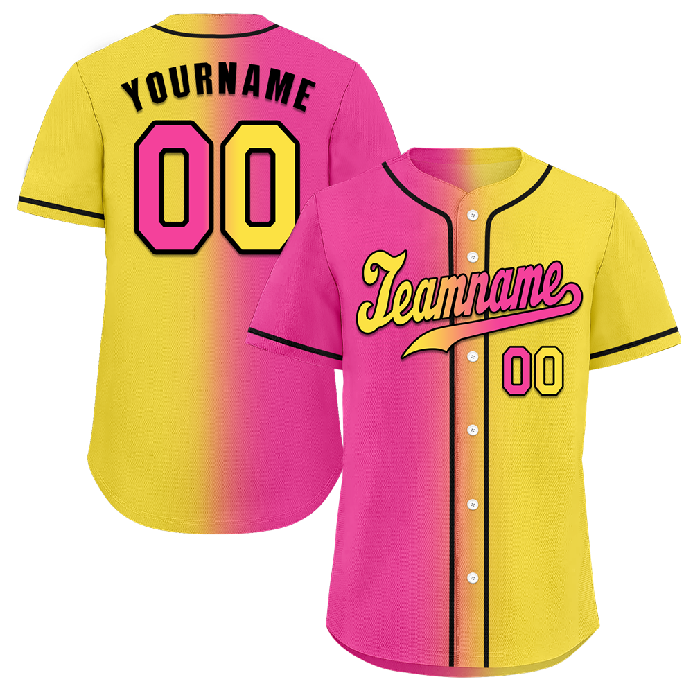 Custom Pink Yellow Gradient Fashion Yellow Authentic Baseball Jersey