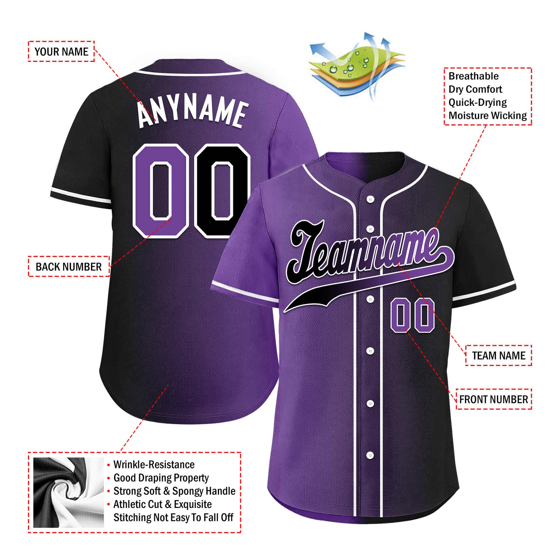 Custom Purple Black Gradient Fashion Personalized Authentic Baseball Jersey BSBJ01-D0a7090