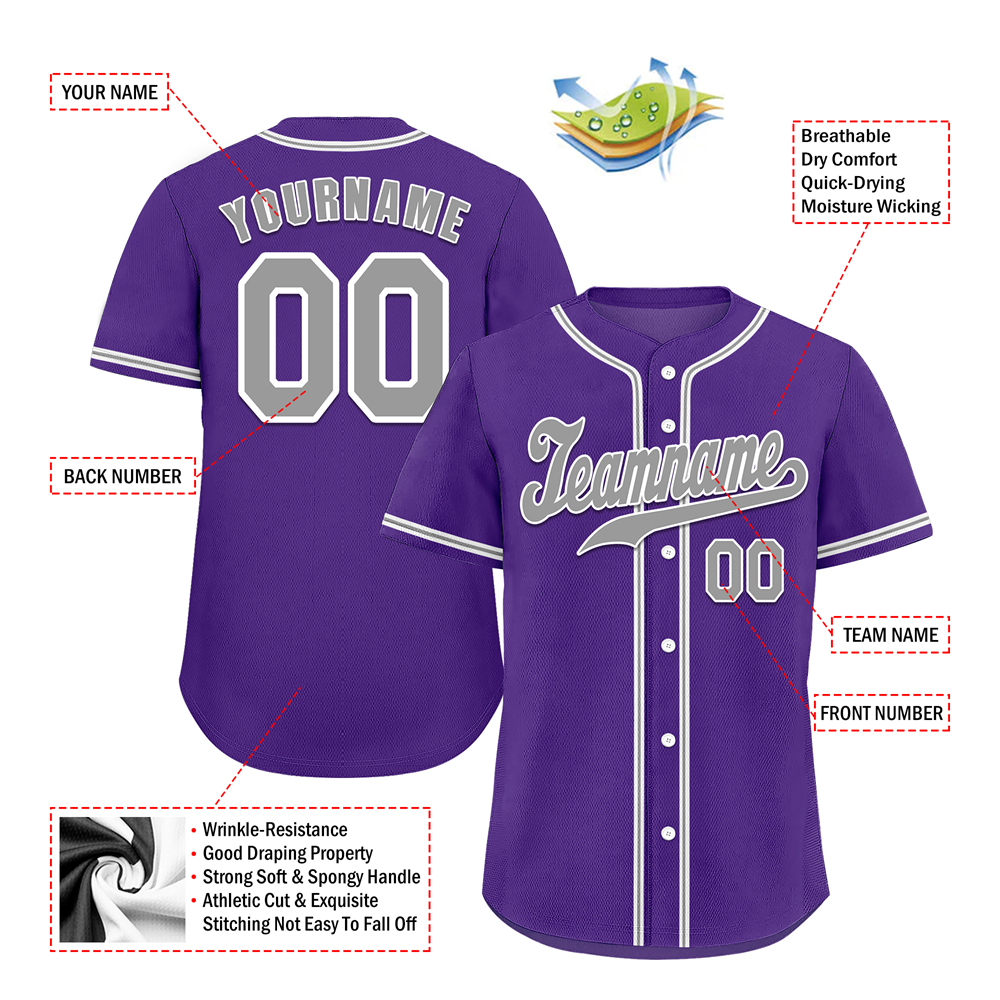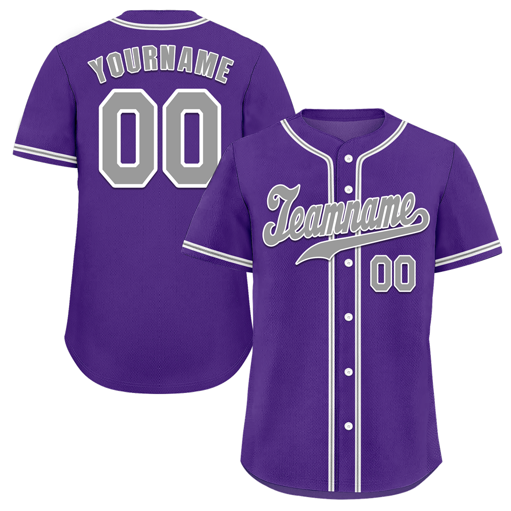 Custom Purple Classic Style Grey Authentic Baseball Jersey