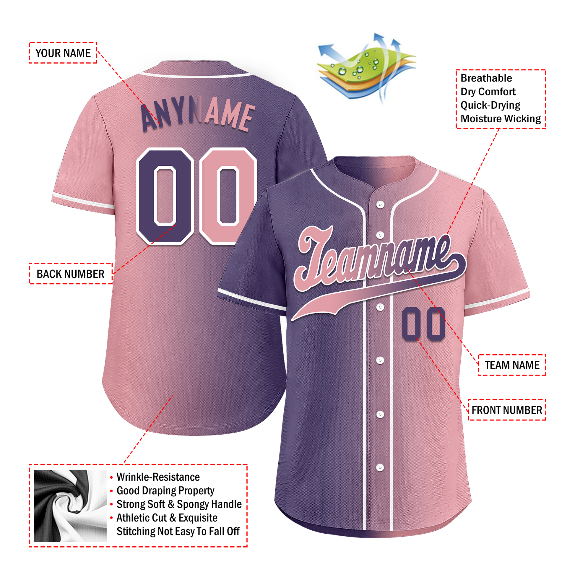 Custom Purple Pink Gradient Fashion Personalized Authentic Baseball Jersey BSBJ01-D0a7a0e