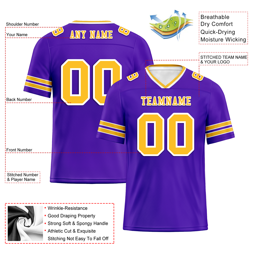 Custom Purple Sleeve Stripes Yellow Personalized Authentic Football Jersey FBJ02-bc0f077
