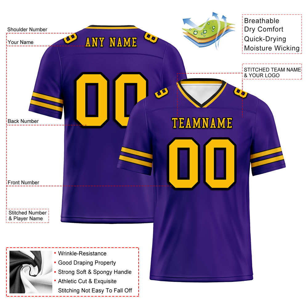 Custom Purple Sleeve Stripes Yellow Personalized Authentic Football Jersey FBJ02-bc0f087