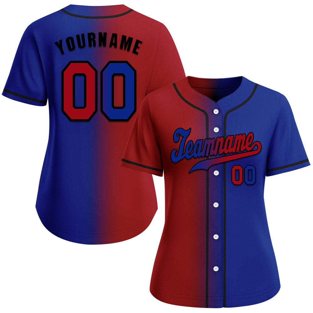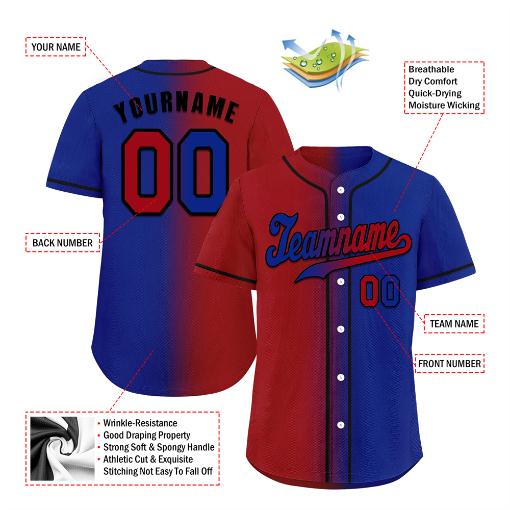 Custom Red Blue Gradient Fashion Blue Authentic Baseball Jersey