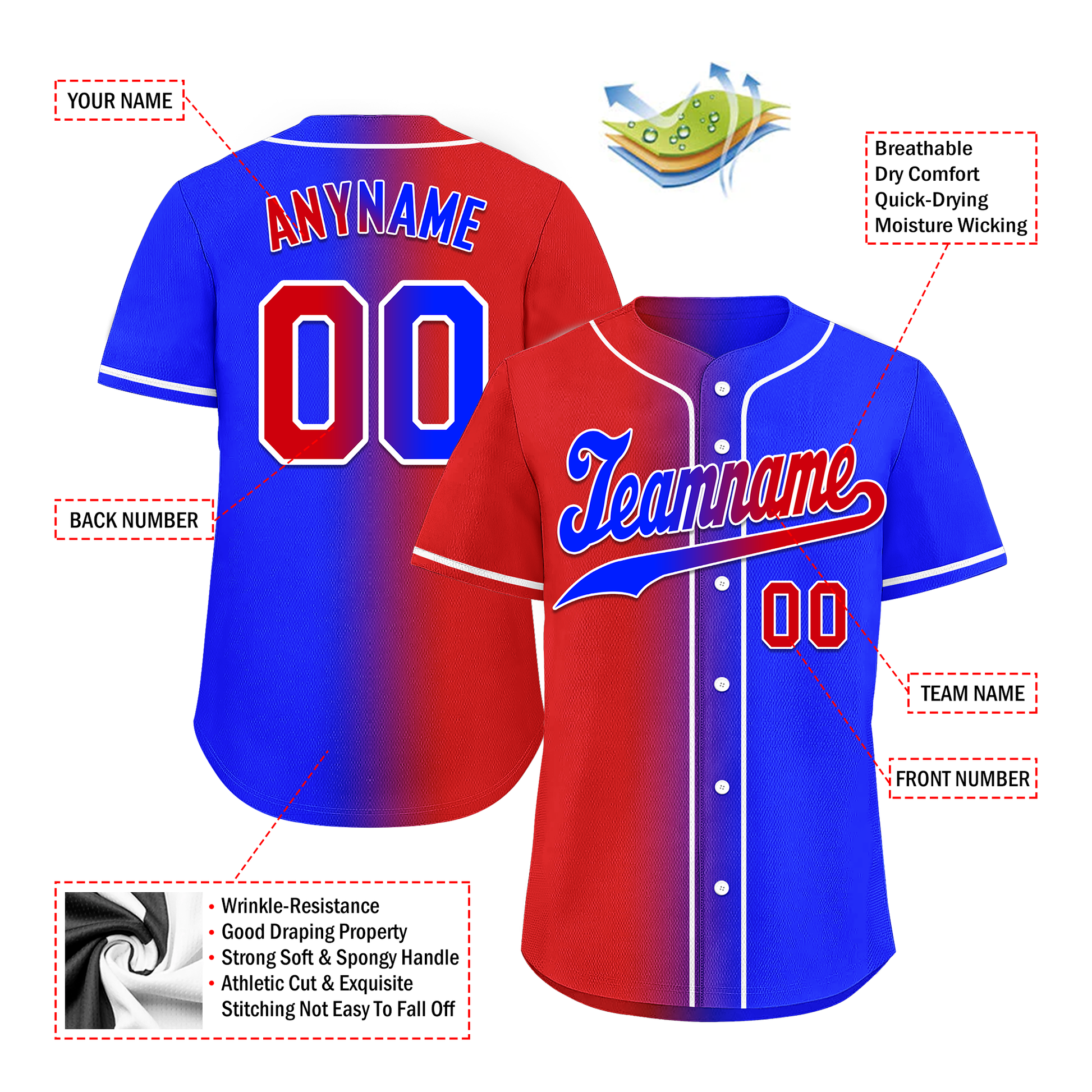 Custom Red Blue Gradient Fashion Personalized Authentic Baseball Jersey BSBJ01-D0a707b