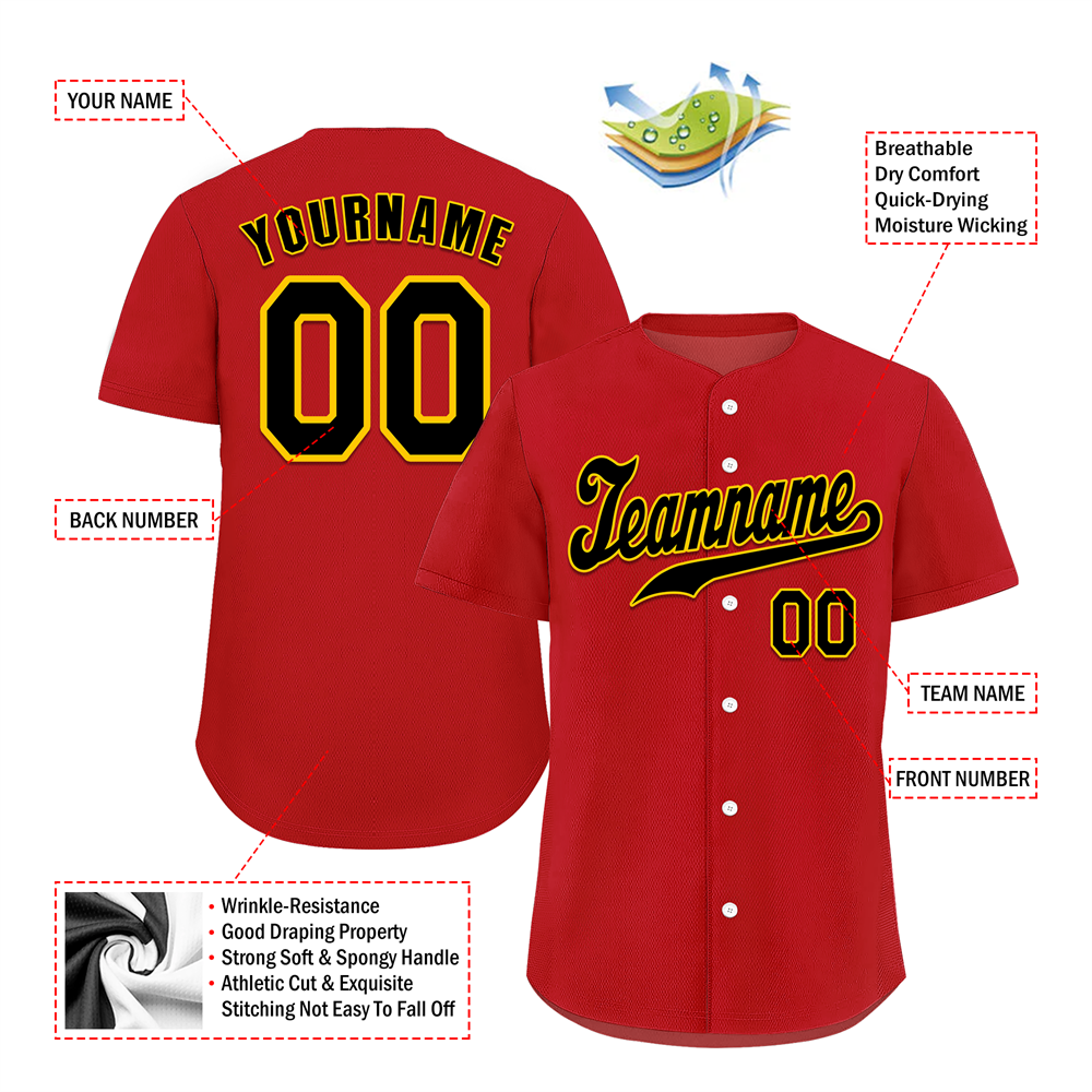 Custom Red Classic Style Black Authentic Baseball Jersey