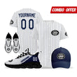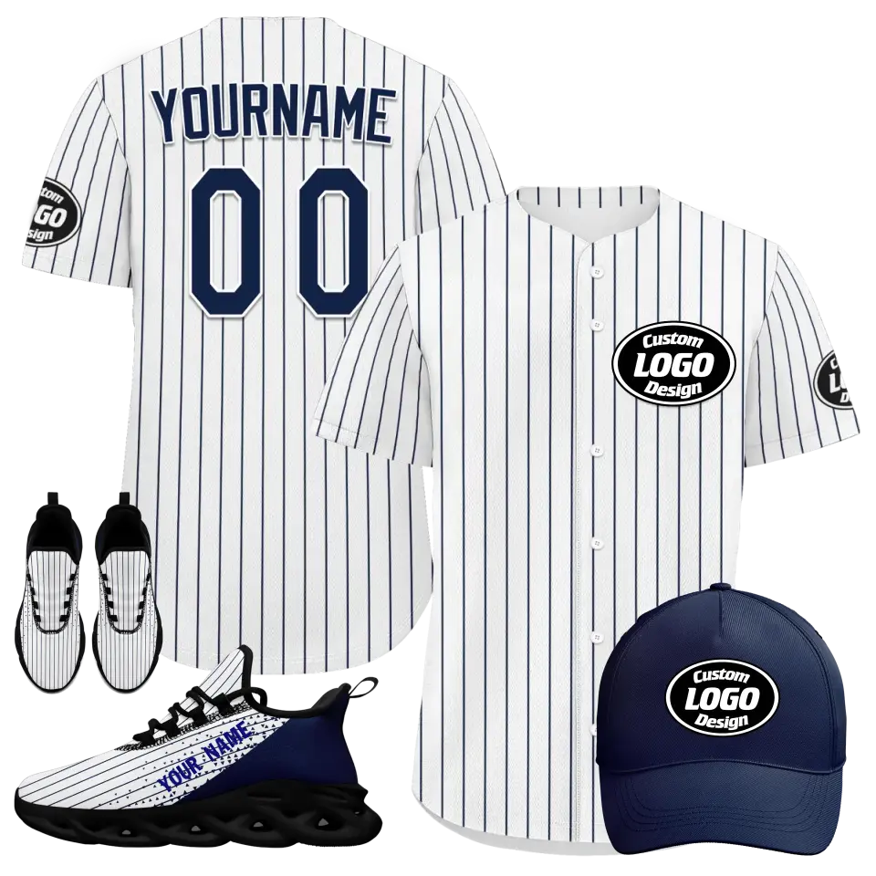 Introducing our Personalized Baseball Combo Deal, a must-have for any baseball enthusiast! This custom stylish set includes a pair of sleek sneakers, a trendy hat, and a comfortable jersey, all personalized to showcase your team spirit. Made with high-quality materials, our teamwear is designed for ultimate comfort and style on and off the field. Don't miss out on this exclusive combo deal, perfect for players and fans alike!