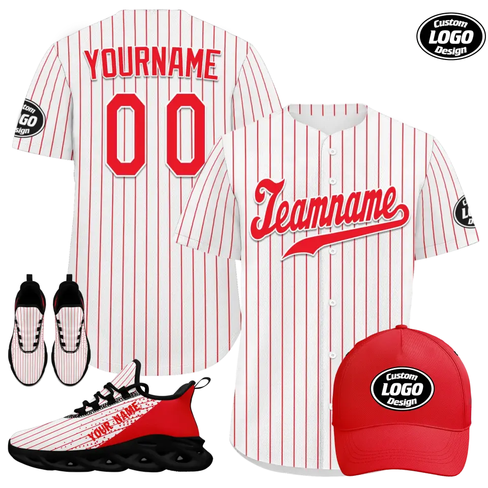 Introducing our Personalized Baseball Combo Deal, a must-have for any baseball enthusiast! This custom stylish set includes a pair of sleek sneakers, a trendy hat, and a comfortable jersey, all personalized to showcase your team spirit. Made with high-quality materials, our teamwear is designed for ultimate comfort and style on and off the field. Don't miss out on this exclusive combo deal, perfect for players and fans alike!