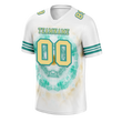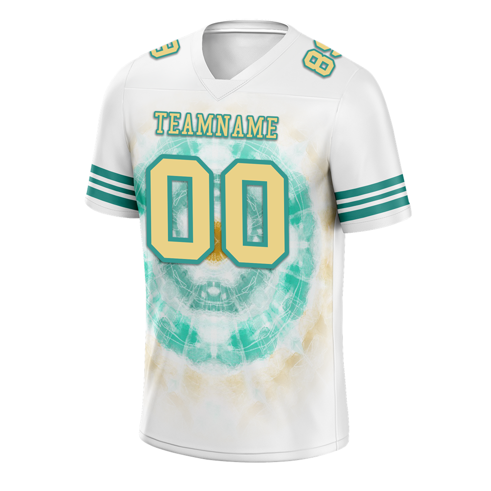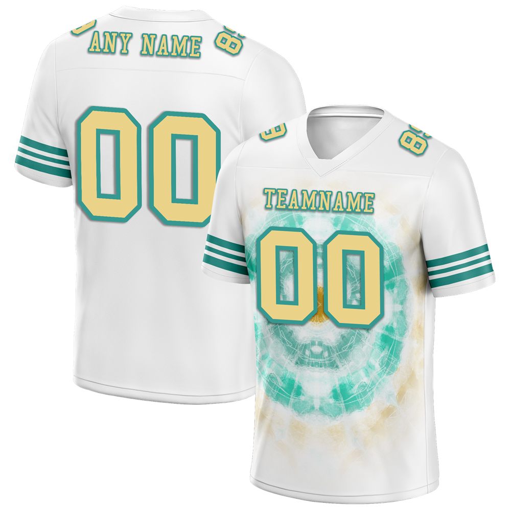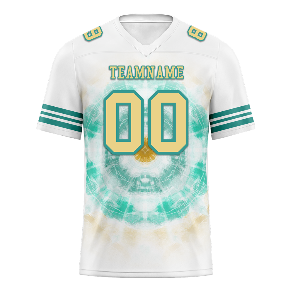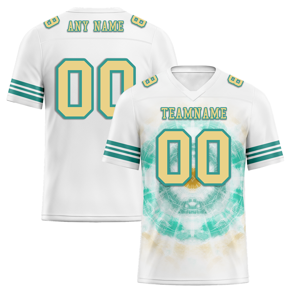 Custom White Aqua Tie Dye Yellow Personalized Authentic Football Jersey FBJ02-bc0fa78