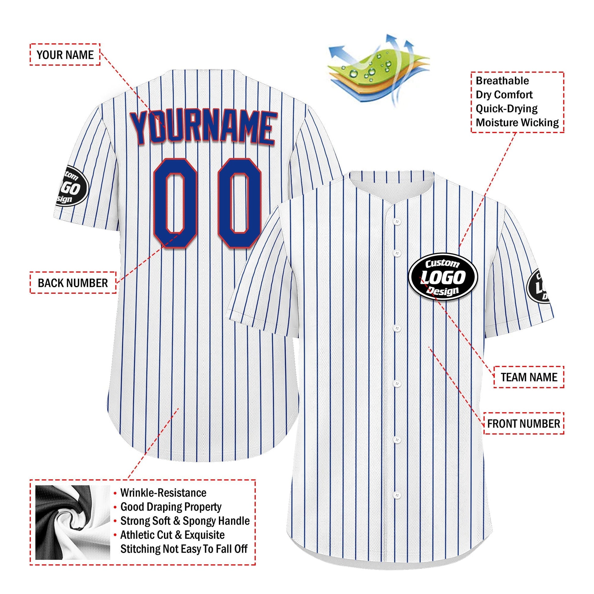 Each CCJ tailored baseball jersey is meticulously personalized with the following features: