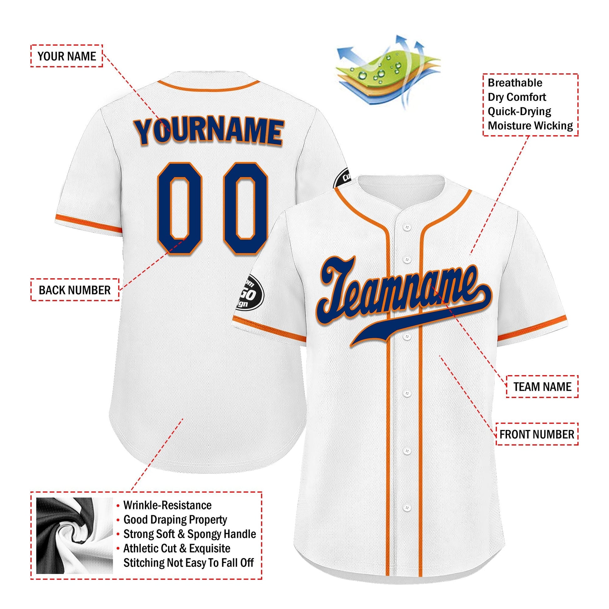 Each CCJ tailored baseball jersey is meticulously personalized with the following features: