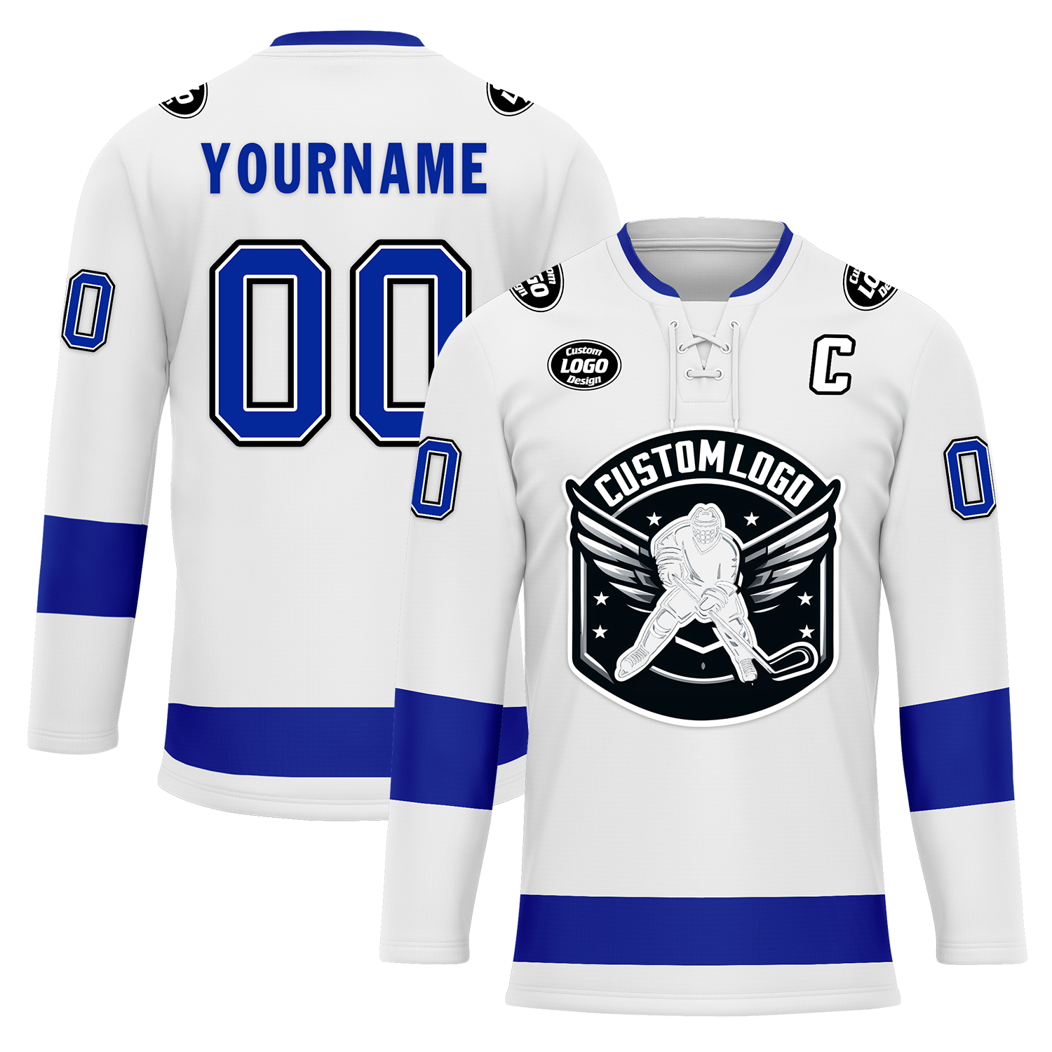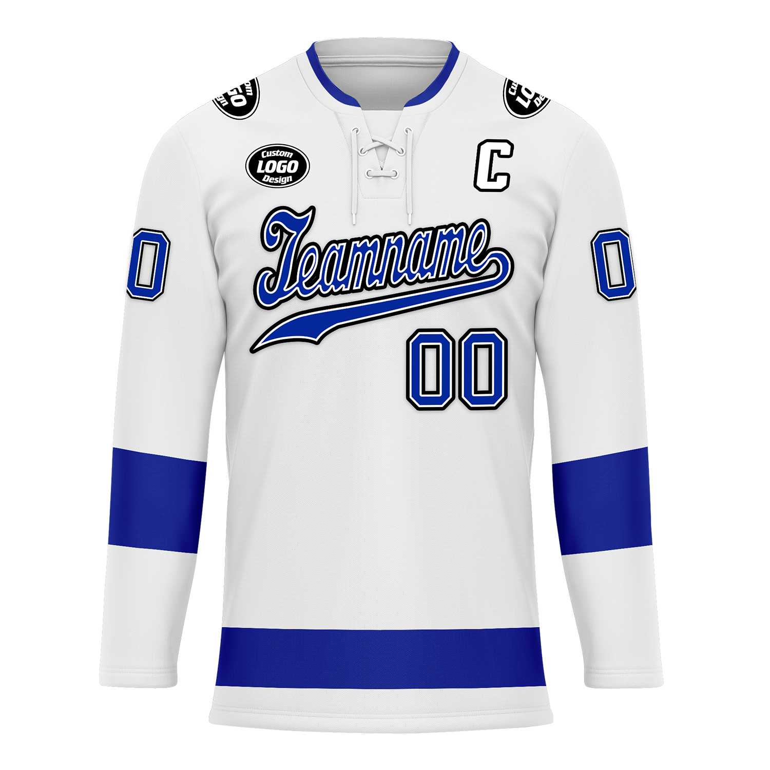 Custom White Blue Personalized Hockey Jersey HCKJ01-D0a70bb