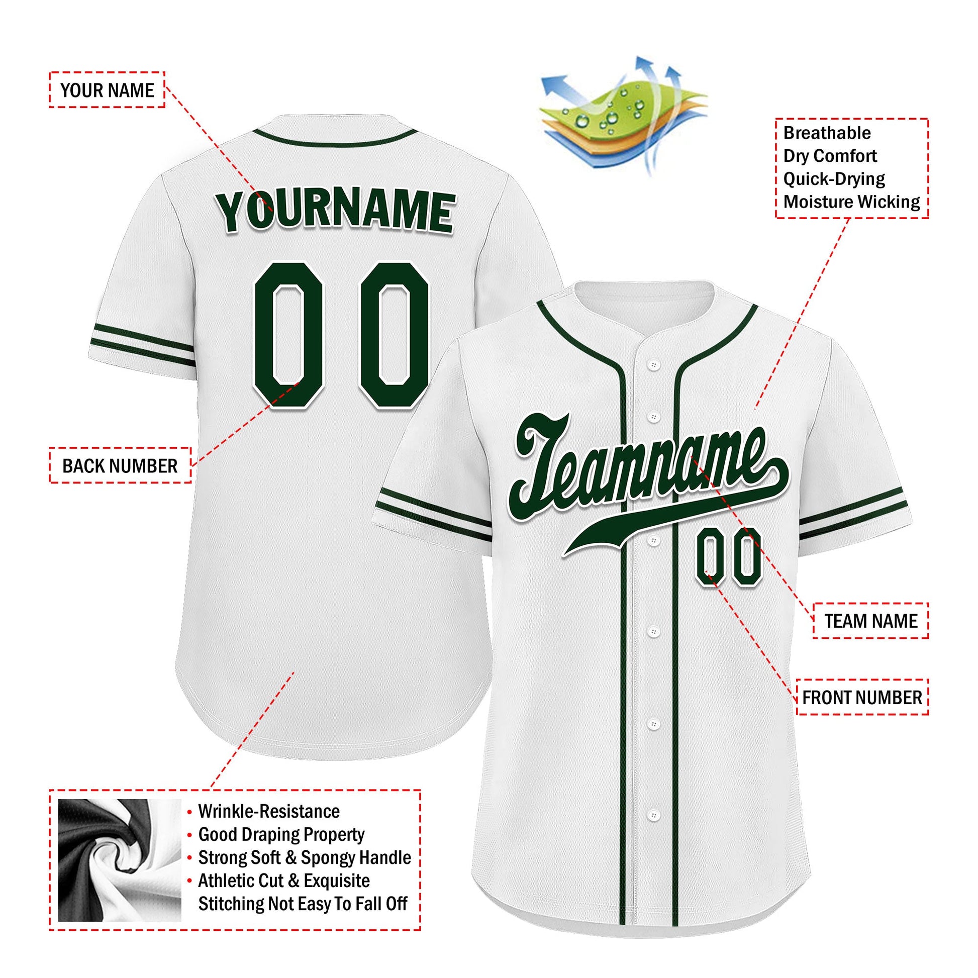 Each CCJ tailored baseball jersey is meticulously personalized with the following features: