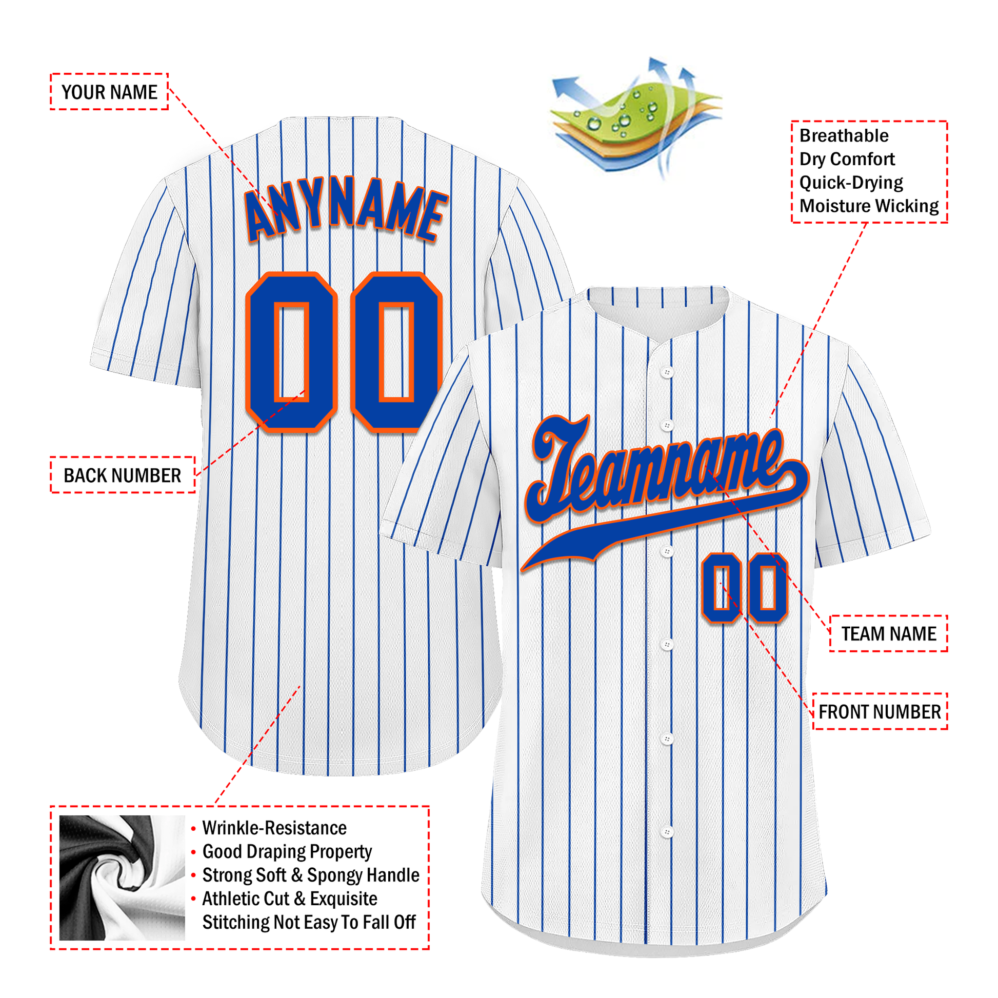 Each CCJ tailored baseball jersey is meticulously personalized with the following features: