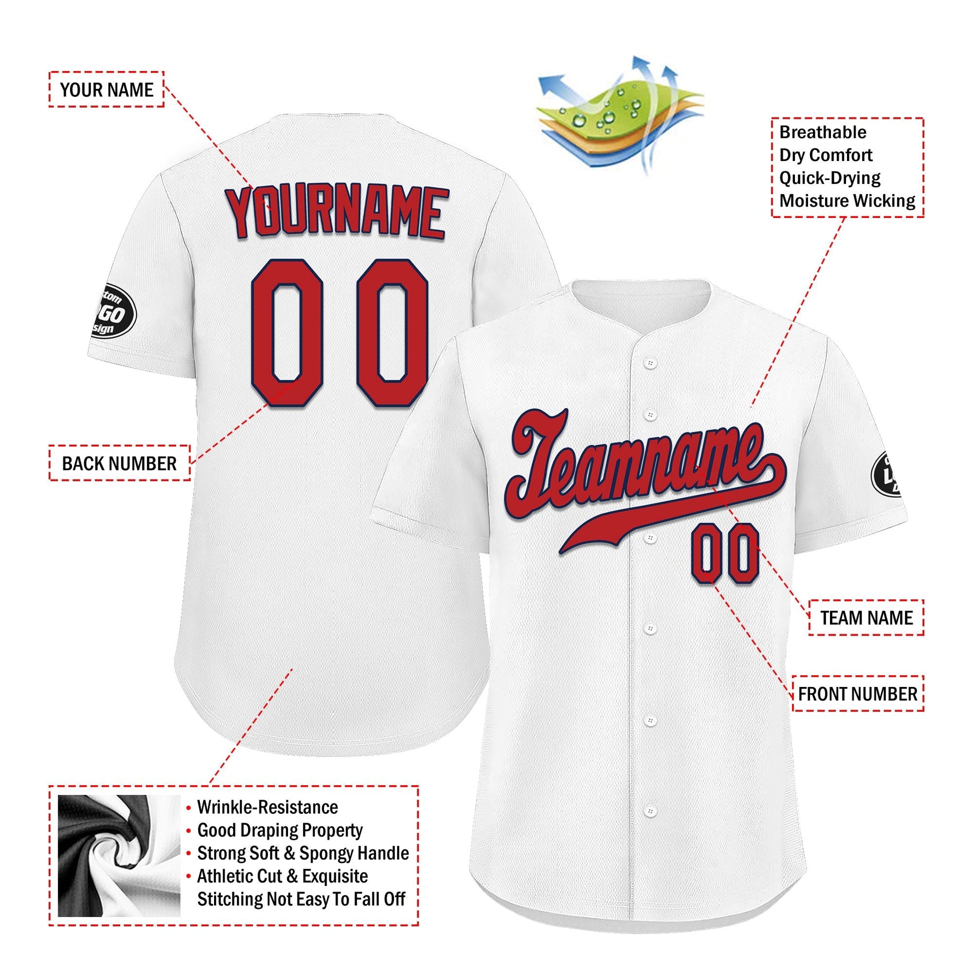 Each CCJ tailored baseball jersey is meticulously personalized with the following features: