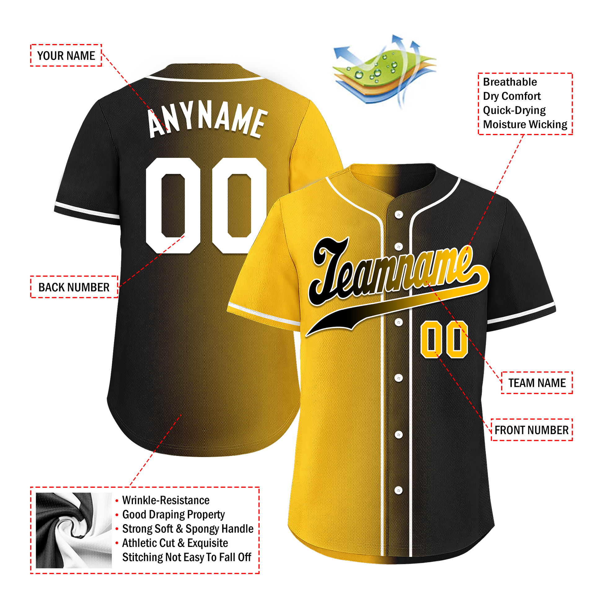 Custom Yellow Black Gradient Fashion Personalized Authentic Baseball Jersey BSBJ01-D0a7a00