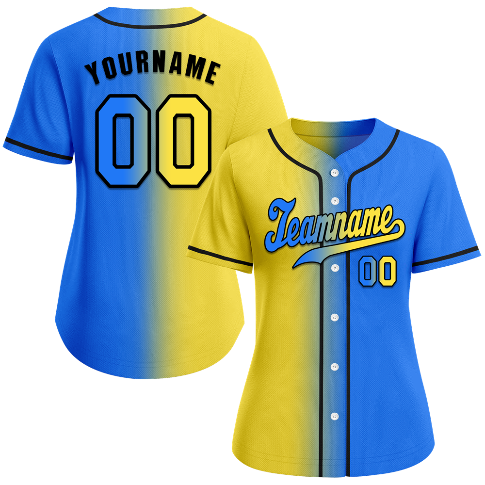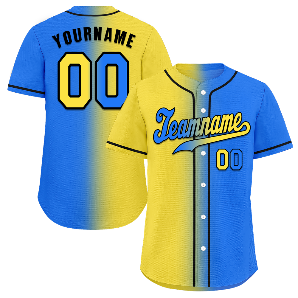 Custom Yellow Blue Gradient Fashion Blue Authentic Baseball Jersey