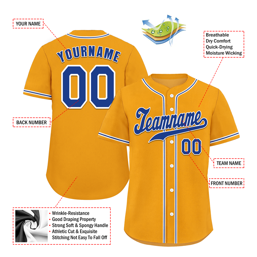 Custom Yellow Classic Style Blue Authentic Baseball Jersey