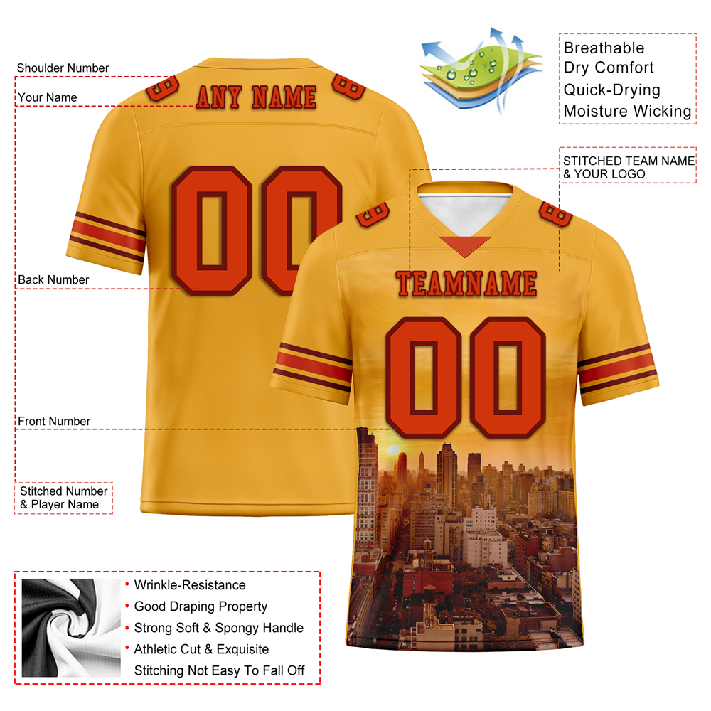 Custom Yellow Graffiti Pattern Orange Personalized Authentic Football Jersey FBJ02-bc0fad8