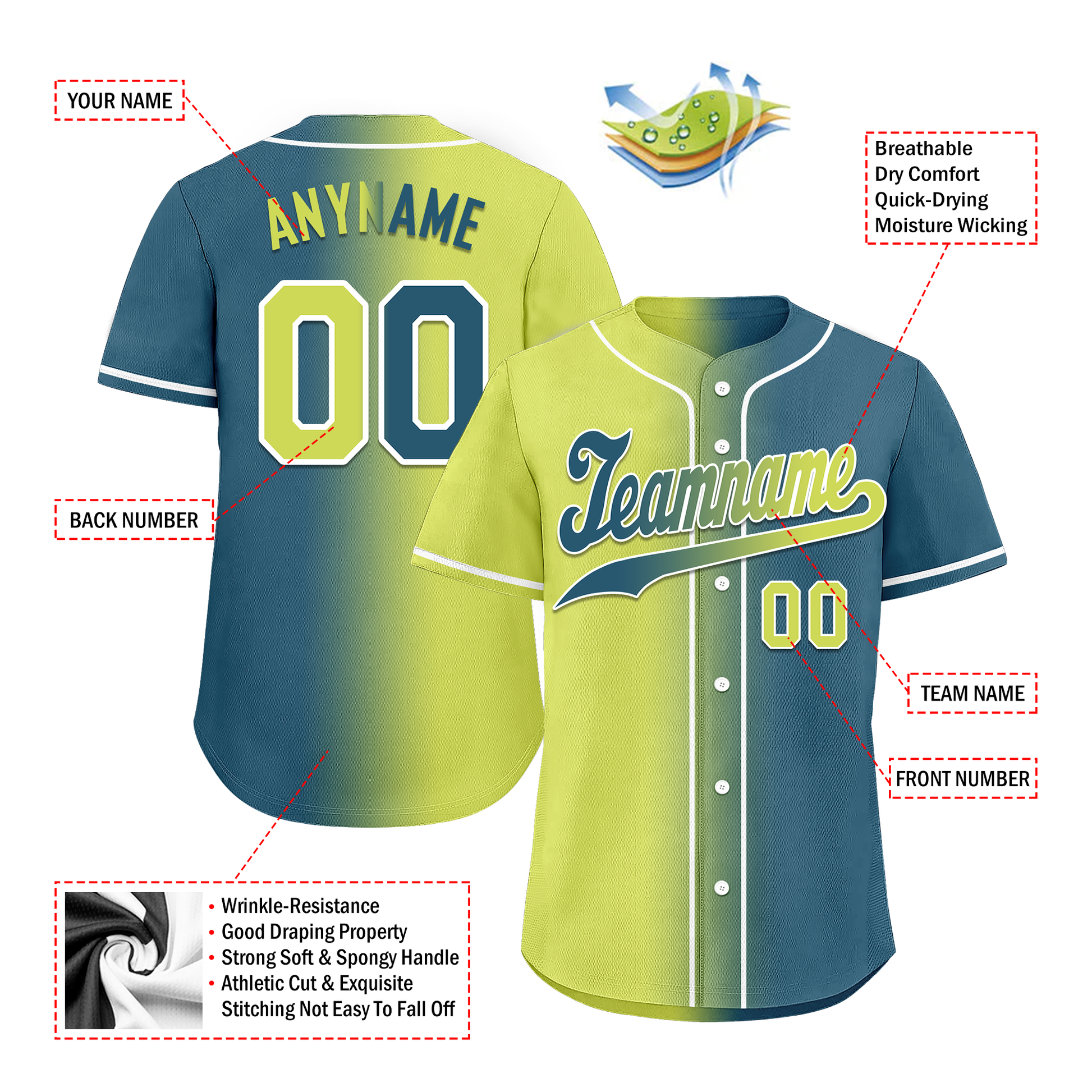 Custom Yellow Green Gradient Fashion Personalized Authentic Baseball Jersey BSBJ01-D0a709d