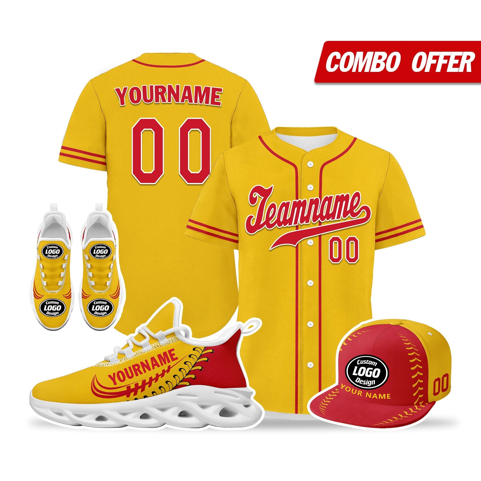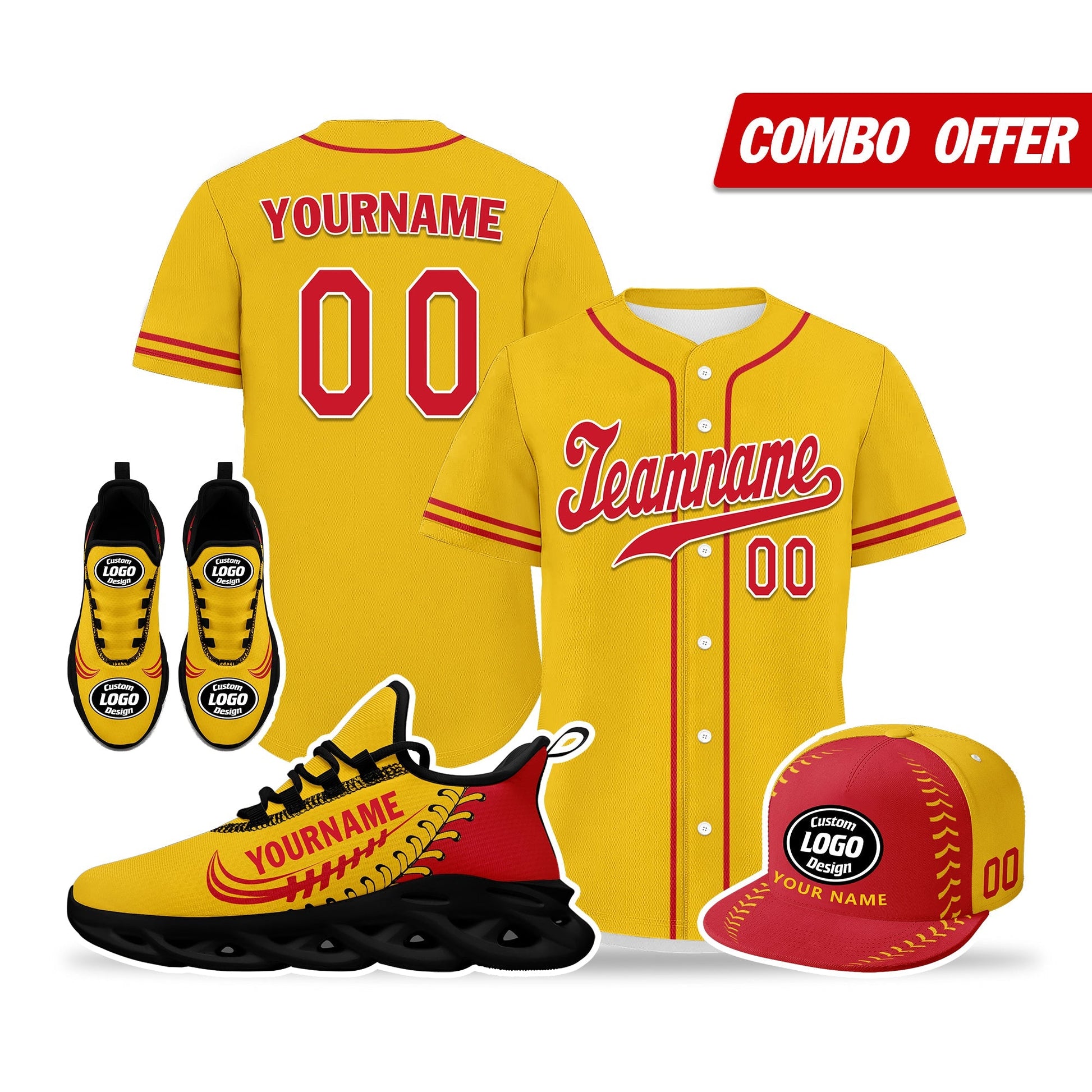 Elevate your fashion game with this exclusive combo deal featuring a custom hat, a pair of custom sneakers, and a custom jersey!
