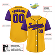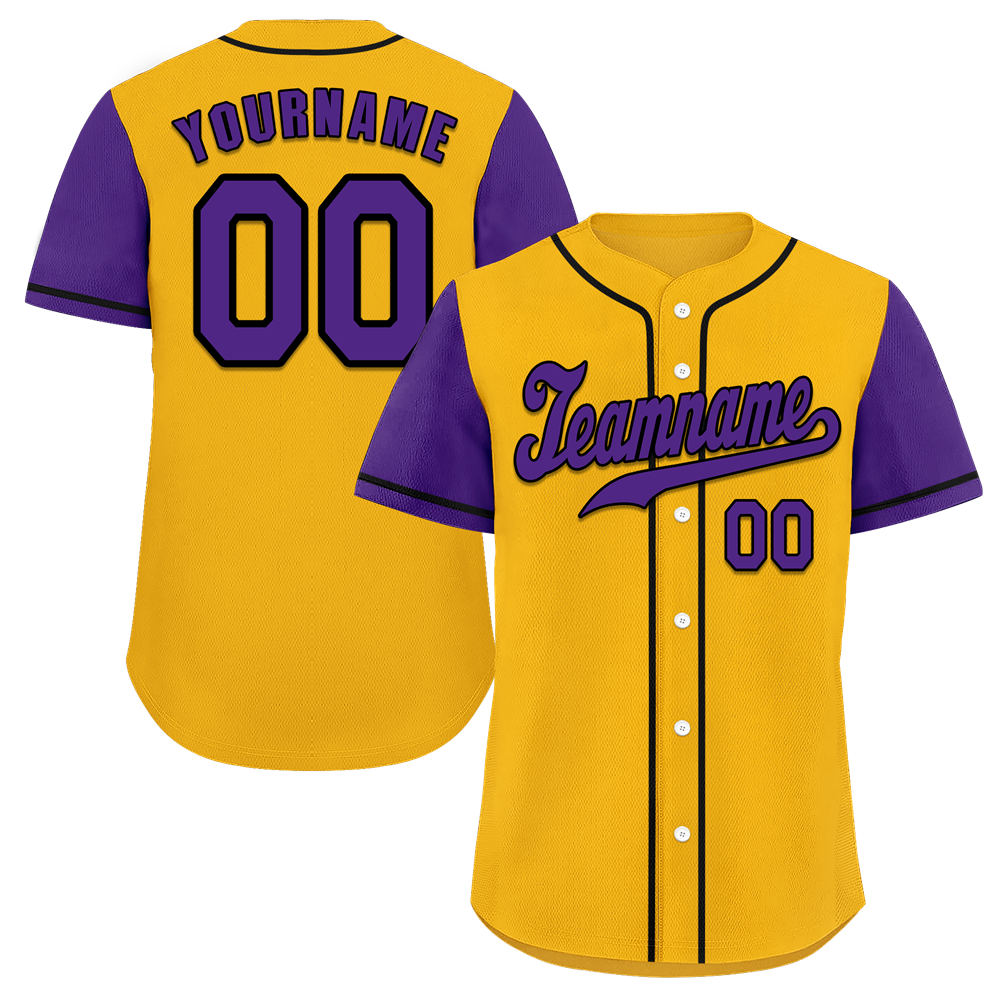 Custom Yellow Purple Raglan Sleeves Purple Authentic Baseball Jersey
