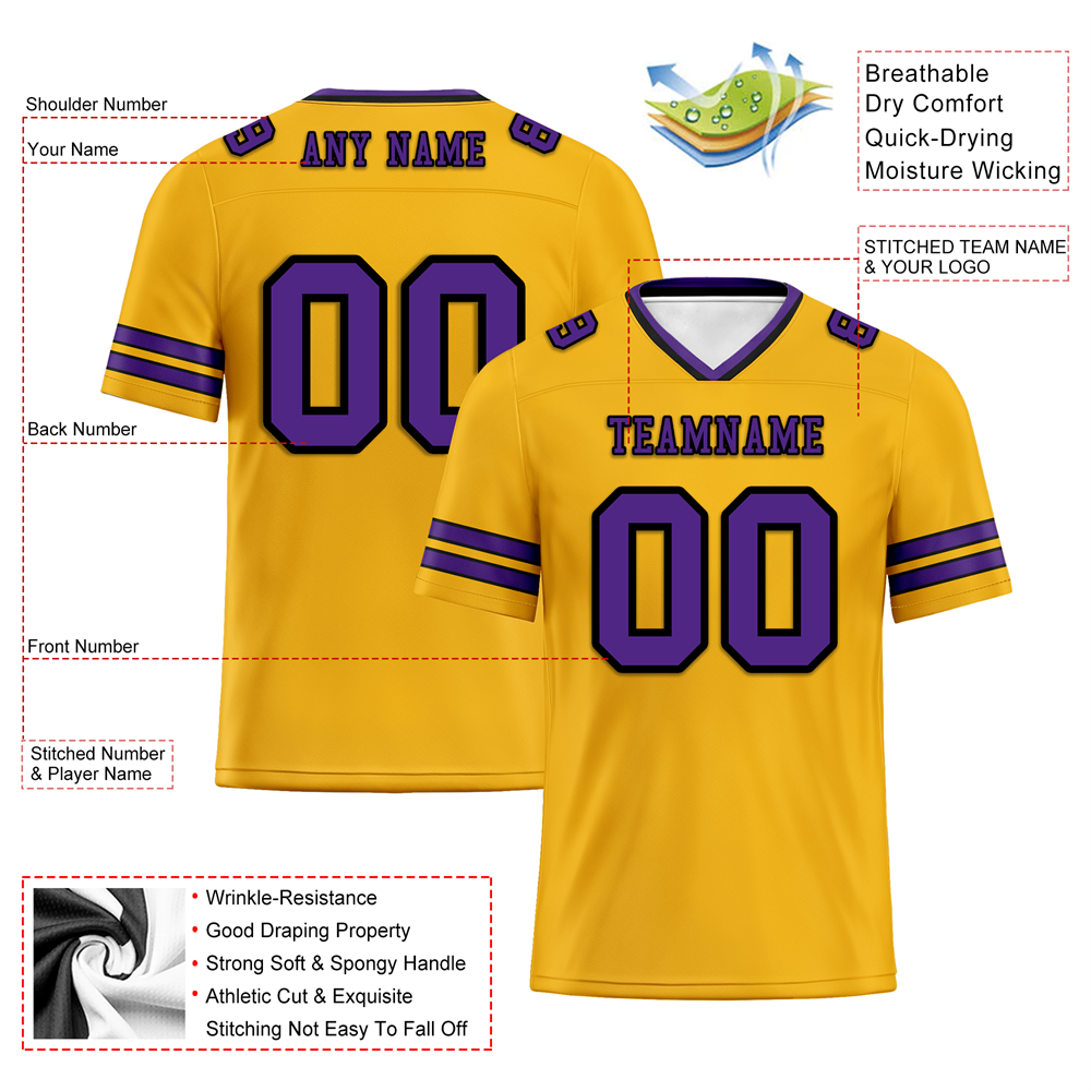 Custom Yellow Sleeve Stripes Purple Personalized Authentic Football Jersey FBJ02-bc0f08f