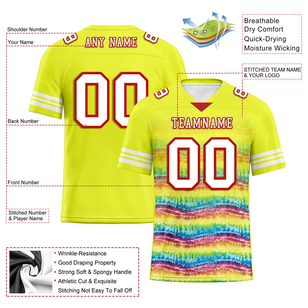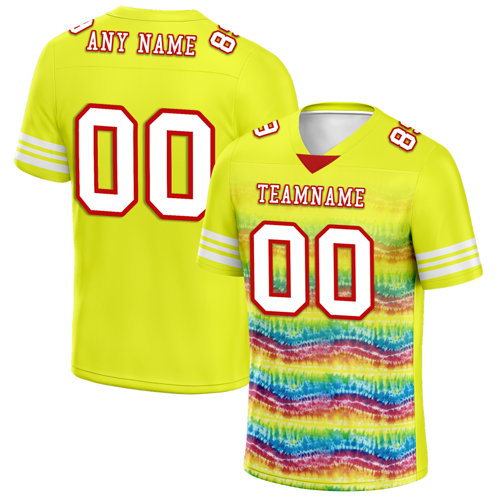 Custom Yellow Tie Dye White Personalized Authentic Football Jersey FBJ02-bc0fa7c