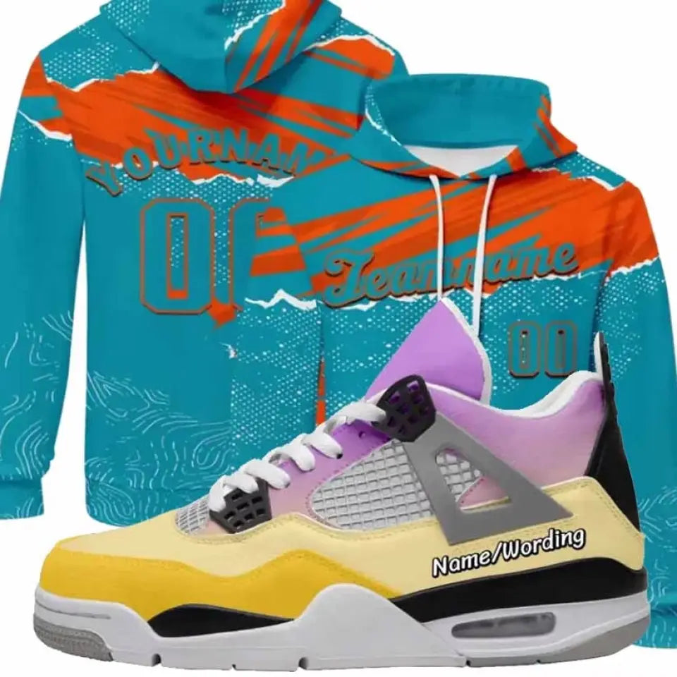 Introducing our personalized fashion-forward hoodies and AJ4 sneakers combo gift! This stylish set is the perfect gift for the trendsetter in your life. The hoodie is customizable with your choice of design or text, making it a truly unique piece. Paired with the iconic AJ4 sneakers, this combo is sure to turn heads and elevate any outfit. Treat yourself or a loved one to this custom and fashionable gift set today!
